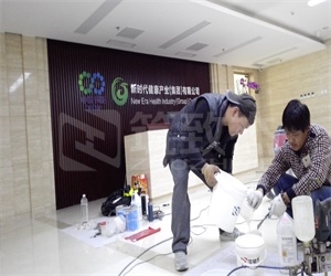 國珍集團位于昌平的新辦公樓,地面采用鋪裝大理石。使用1年后局部出現(xiàn)空鼓。處理方案:高壓灌漿技術+外觀色差修復。材料和技術選用北京中冶寶成建筑修復技術有限公司的筑致杰®AB-5樹脂及混凝土色差調整劑。